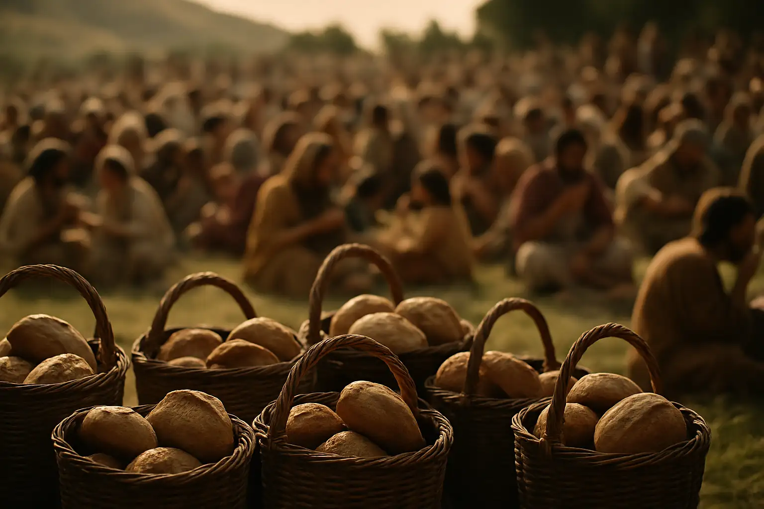 Have you noticed that in these accounts, God’s abundance is inversely proportional to man’s share in it? When four thousand men were gathered and only seven loaves were available, seven baskets were left. But when a thousand more men were gathered, with even fewer loaves, no less than twelve baskets were left afterward.