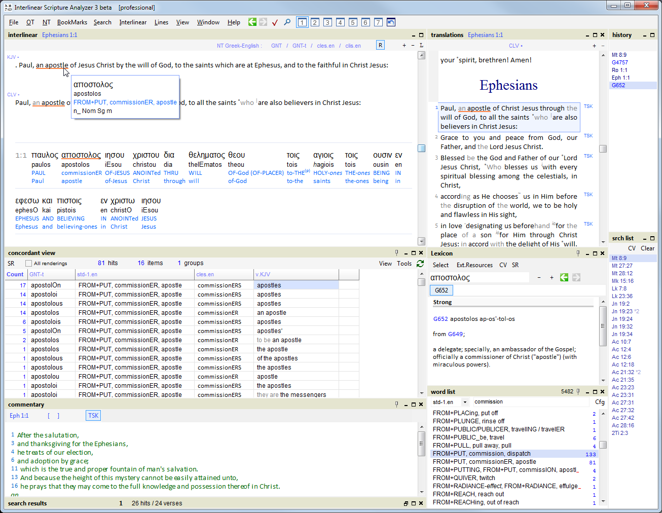 Many had been looking forward to it, and today the moment has arrived. A completely renewed version of the advanced Bible software program ISA – Interlinear Scripture Analyzer, is now available. Free of charge, no less. And that’s truly remarkable when one considers all that is possible with this interlinear Bible program. ISA basic 2.0 looks even more polished than the previous version, it runs faster, the interface is simpler, the search function is quicker, searching with wildcards is easier, and so on. The Hebrew text is now provided with the Masoretic vowel points, the Hebrew Strong representation has been checked and is now equipped with a lexicon. In addition, the sublinear CHES (concordant-idiomatic) has been fully corrected and now follows exactly the ‘official’ grammar of the Westminster Hebrew Morphology. The NT databases have also been completely updated and corrected. Perhaps the most characteristic feature of ISA, the Concordant View, has been further developed and made more advanced. Through this window, all sublinears can be directly checked for concordance. And this is just a glimpse of what this new version has to offer. If you want to know more about what’s new, you should take a look at the ISA website yourself.