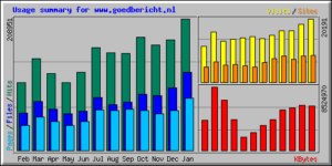 To give an impression: in the month of January (which ends only tomorrow), more than 20,000 visitors were recorded in total. That’s a daily average of 673 visitors. On average, nearly 7,000 hits and 2,753 page views were registered each day. I’ll admit—’Dancing on Ice’ is more popular and ‘NU.nl’ would laugh at these numbers—but still…